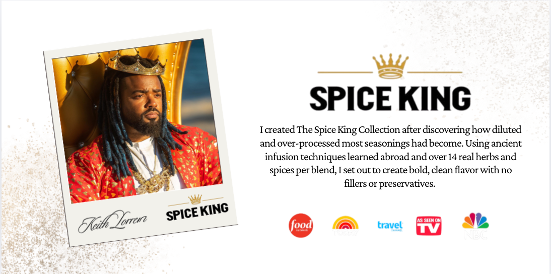 As the founder of the largest African American–owned spice brand in the world, Keith Lorren has built a global flavor empire with products sold in over 5,000 retail locations, including Walmart, Costco, Kroger, H-E-B, Stop & Shop, Big Y, Jewel-Osco, Food Lion, and Fry’s, among others.